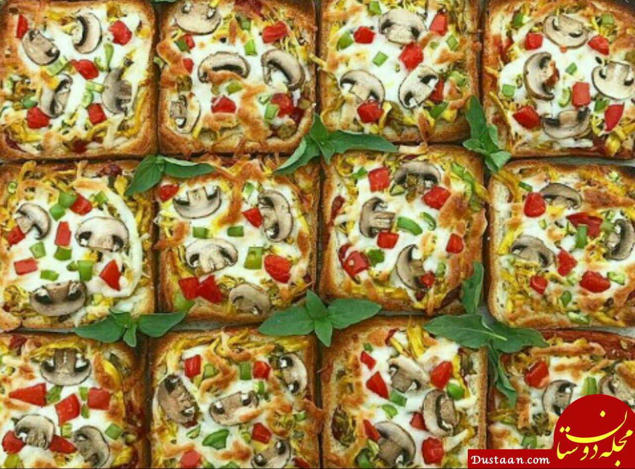 طرز تهیه پیتزای تک نفره با نان تست به سبکی آسان و خوشمزه +عکس
