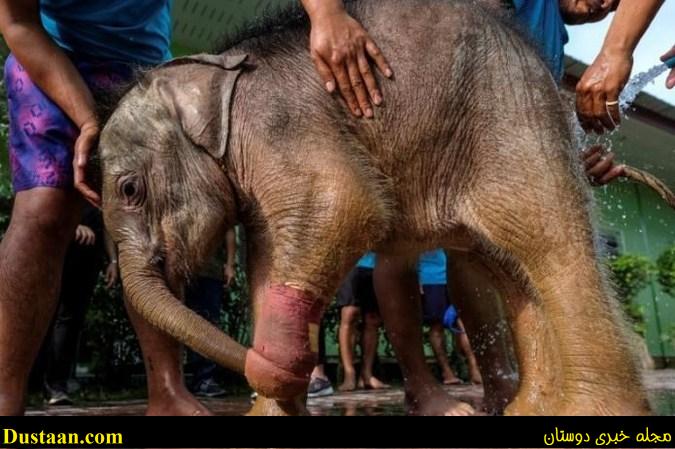 بچه فیل پنج ماهه در مرکز توانبخشی حیوانات تایلند روند بهبود خود را سپری میکند.