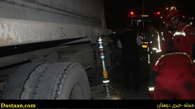 وی با اشاره به حضور آتش نشانان در محل حادثه گفت: پس از حضور آتش نشانان در محل مشاهده شد که یک دستگاه سواری پراید حین حرکت در مسیر ناگهان به شدت با قسمت عقب یک دستگاه تریلر که در حاشیه اتوبان متوقف شده بود برخورد کرده و شدت حادثه به حدی بوده که کابین پراید کاملا متلاشی شده و در زیر کفی تریلر قرار گرفته بود.
