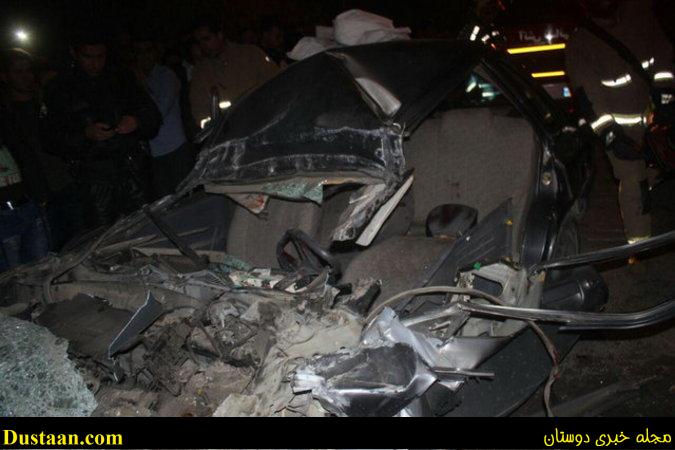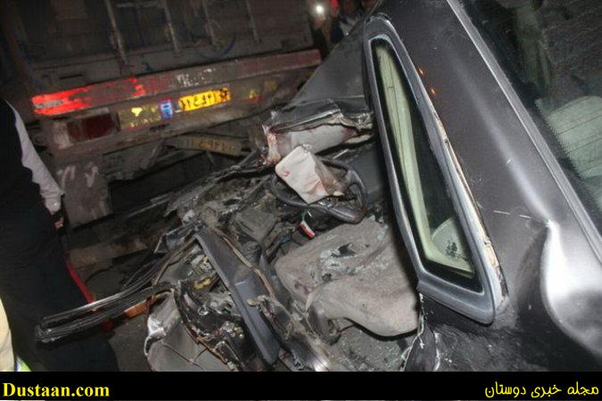 راننده خودروی پراید با خوش شانسی تمام پس از برخورد شدید به یک تریلی جان سالم به در برد.