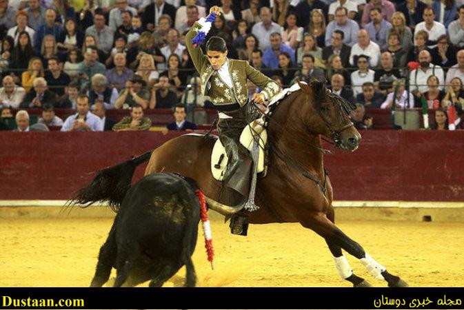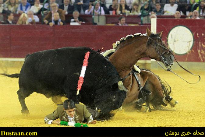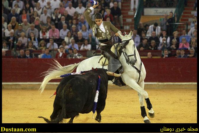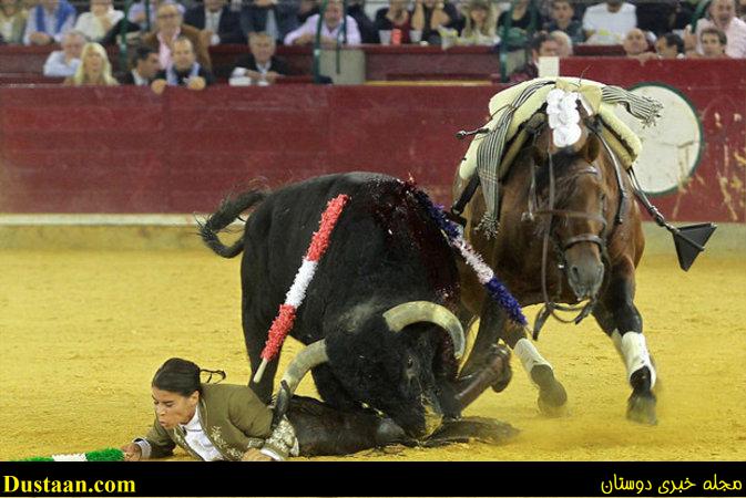 لی ویسنس، گاوباز زن اسپانیایی که سال گذشته انتشار عکسی از وی که نشان می داد گوش های یک گاو را بریده، انتقاداتی را برانگیخته بود، این بار در جریان یک مسابقه گاو بازی در زاراگوزا مغلوب یک گاو وحشی شد.