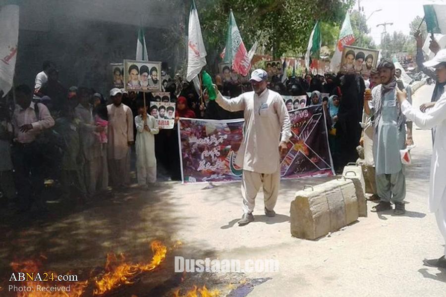 شیعیان پاکستانی با حمل تصاویری از امام خمینی (ره) و امام خامنه ای، رهبر معظم انقلاب تظاهرات کردند.