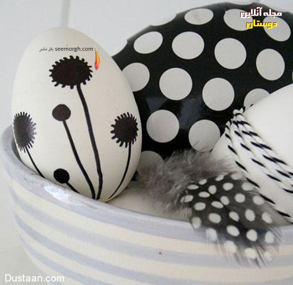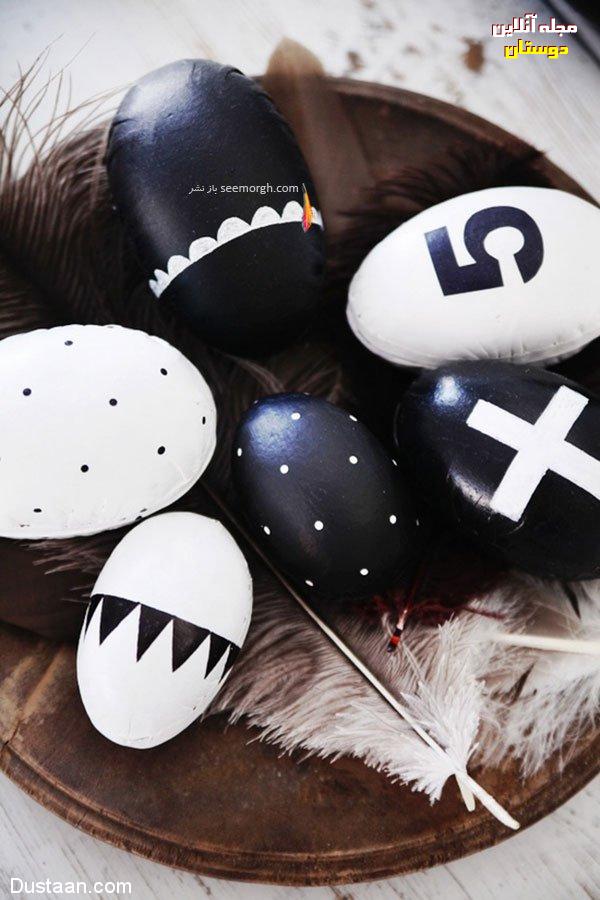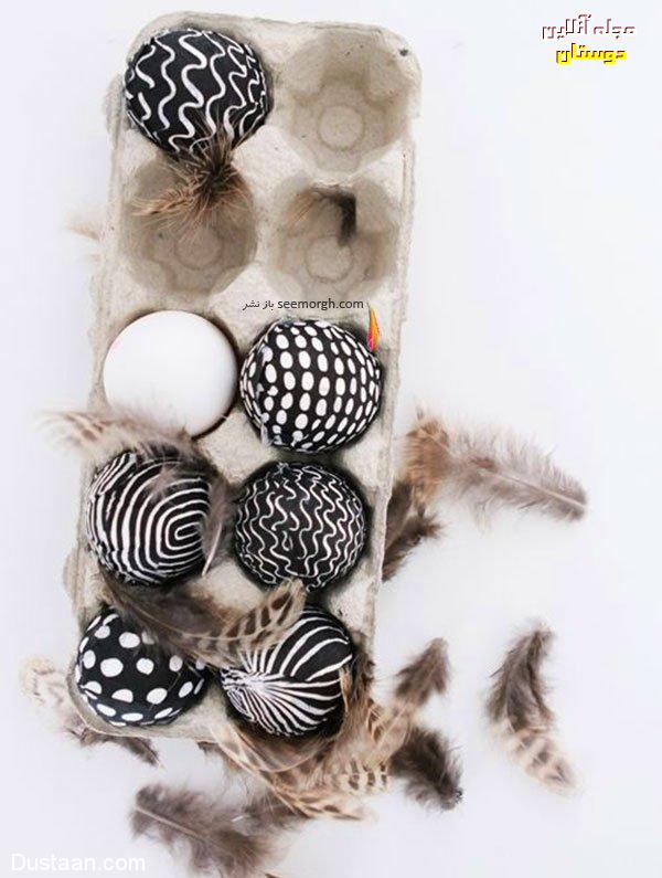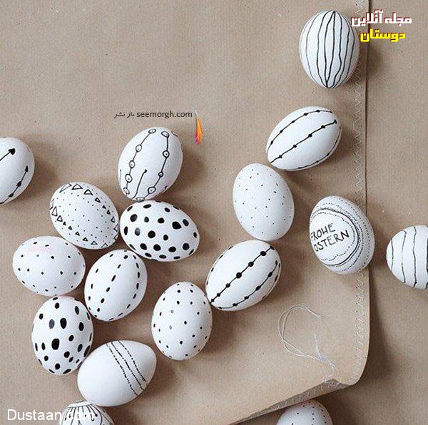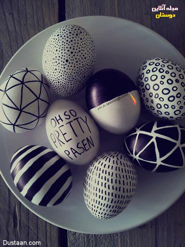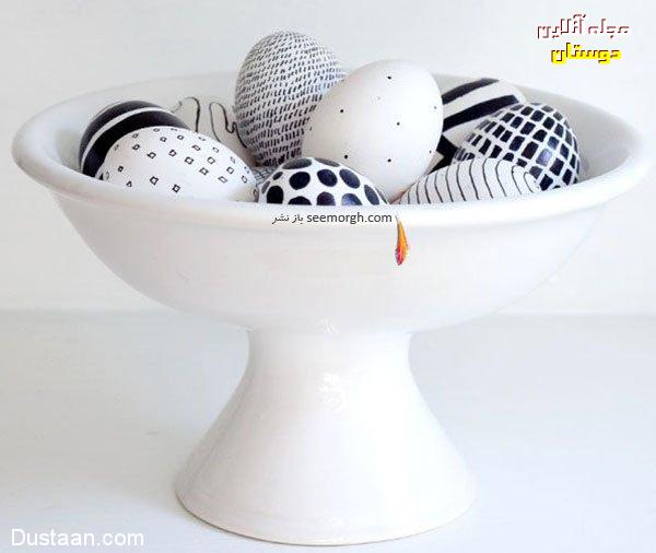 استفاده از طرحهای سیاه و سفید یکی از بهترین ایده ها برای تزیین تخم مرغ هفت سین است.