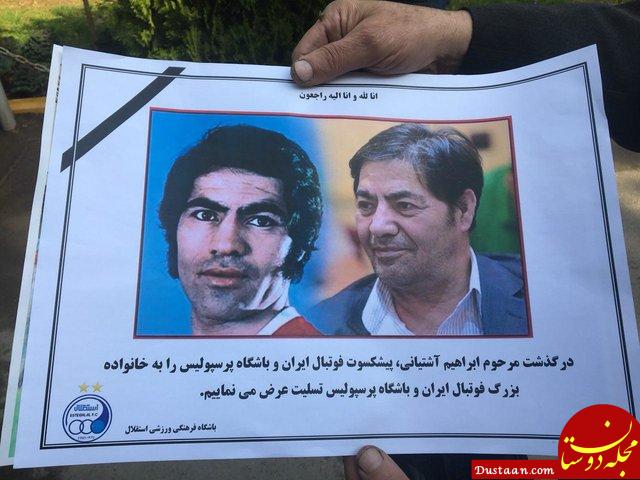 این در حالی است که از باشگاه استقلال، زمانی و ملکی دو عضو هیات مدیره به مراسم تشییع آمده بودند و همین طور بروشوری چاپ شده بود که از طرف باشگاه استقلال درگذشت ابراهیم آشتیانی را تسلیت گفته بود.