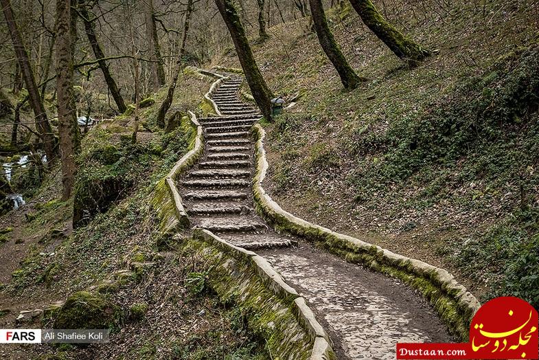 در شمالغرب قلعه، رودخانه و آبشاری با همین نام جاری است که علاوه بر طبیعت جنگل، زیبایی مسیر ۵ کیلومتری پلکانی عبور گردشگران را دوچندان میکند.