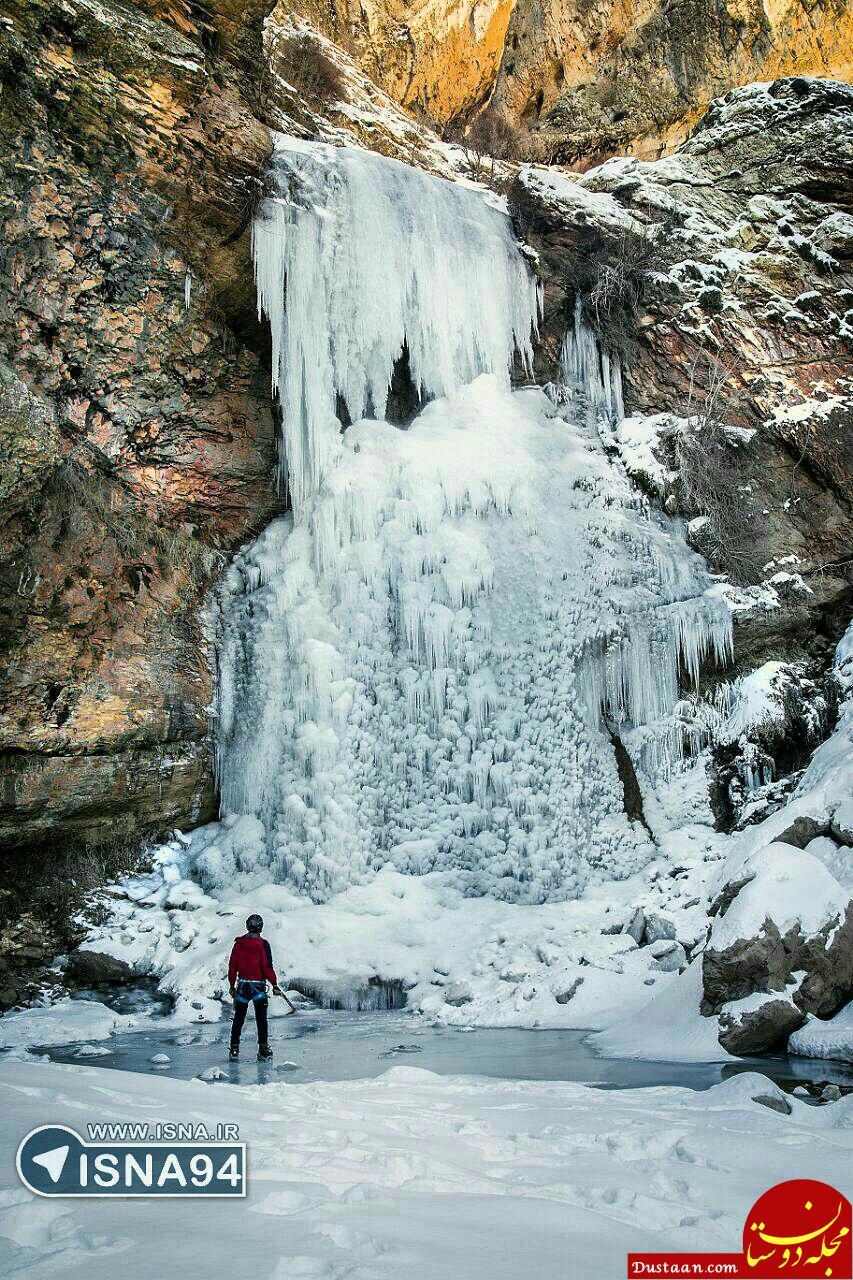 نمایی زیبا از آبشار یخ زده پیر آبرود در خرم آباد