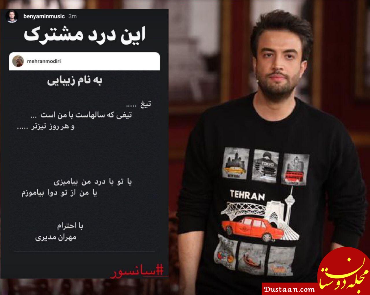 بعد از مهران مدیری که دو شب قبل به طور غیرمستقیم به ممیزی برنامه «دورهمی» اعتراض کرده بود این بار بنیامین بهادری مهمان شب گذشته این برنامه با به اشتراک …