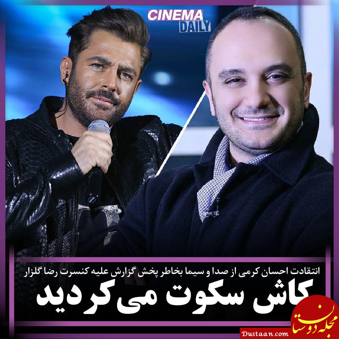احسان کرمی درباره پخش گزارش اخبار بیست و سی و برنامههای صدا و سیما علیه کنسرت رضا گلزار در آمریکا نوشت: «اینجا ایران است! جایى که سوپر استارش تا وقتى …