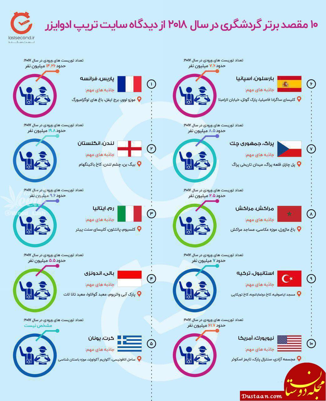 در اینفوگرافیک زیر ۱۰ مقصد برتر گردشگری در سال ۲۰۱۸ را مشاهده می کنید.