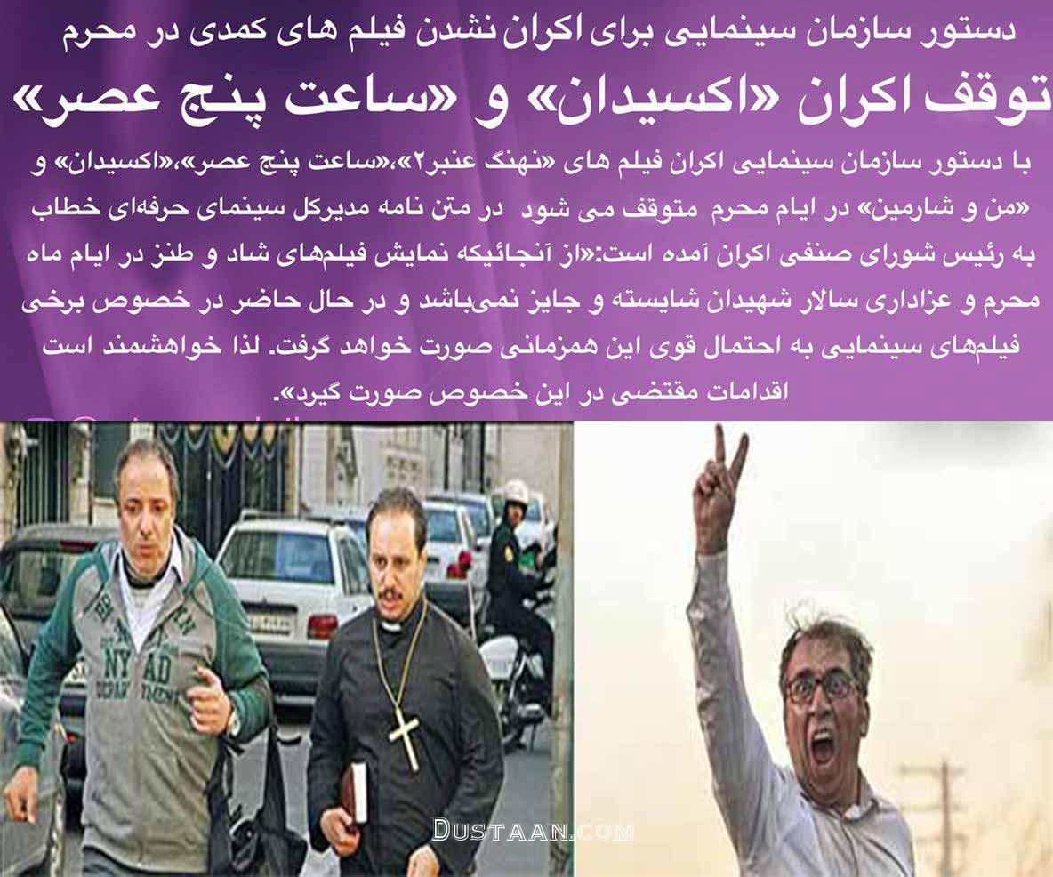 با دستور سازمان سینمایی فیلم های کمدی در ایام محرم اجازه اکران ندارند؛ به این ترتیب اکران فیلم های «اکسیدان»، «من و شارمین» و… متوقف می شود. توقف اکران فیلم …