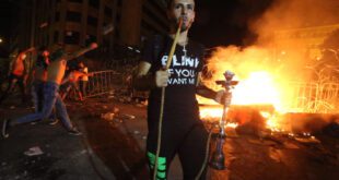 مجله انلاین دوستان : تصویر زیر یک جوان لبنانی را در حال کشیدن قلیان در میان تظاهرات بیروت نشان می دهد .