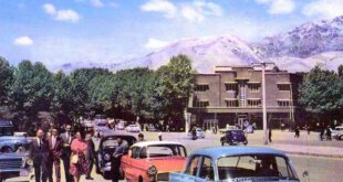تصویری قدیمی اما رنگی! که از ضلع شمال غربی میدان تجریش در سال ۱۳۴۰ به ثبت رسیده است …