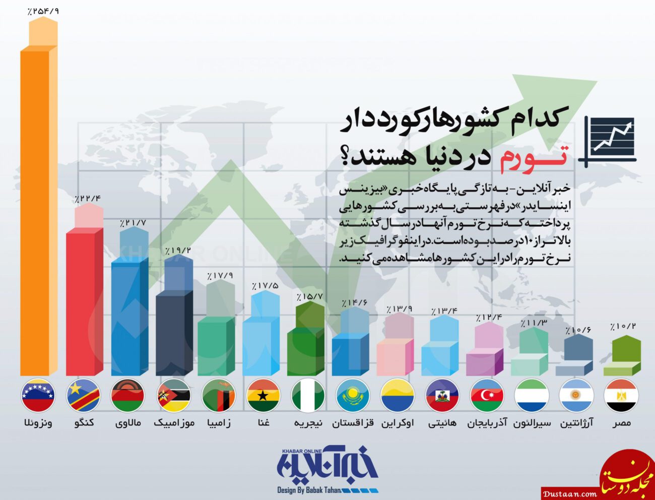 پایگاه خبری بیزینس اینسایدر فهرستی از کشورهای با نرخ تورم بالا تهیه کرده است ، در این لیست کشورهایی که تورم آنها بالای ۱۰ درصد است نمایش داده شده است. …