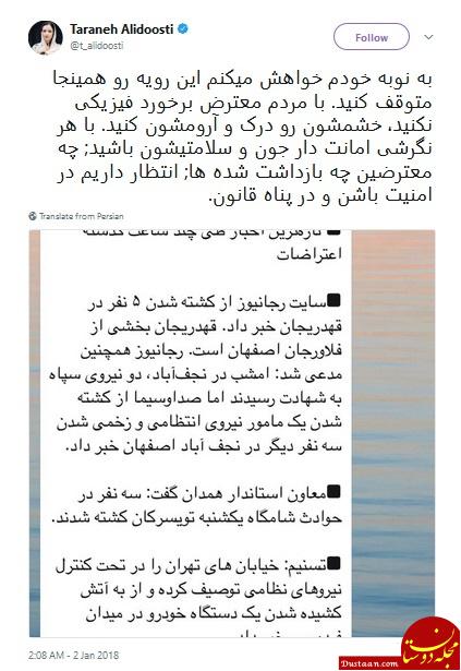 ترانه علیدوستی بازیگر سینما، توئیتر خود را با انتشار پستی درباره اغتشاشات اخیر به روز کرد. ترانه علیدوستی در توییتر نوشت: «به نوبه خودم خواهش میکنم این رویه رو همینجا …