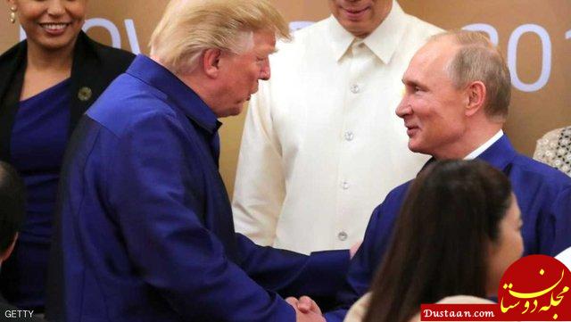 دونالد ترامپ رئیس جمهور آمریکا با ولادیمیر پوتین همتای روسی خود در جریان حضور در ضیافت شام در جریان شرکت در نشست همکاری اقتصادی کشورهای حوزه آسیا -پاسیفیک موسوم به …