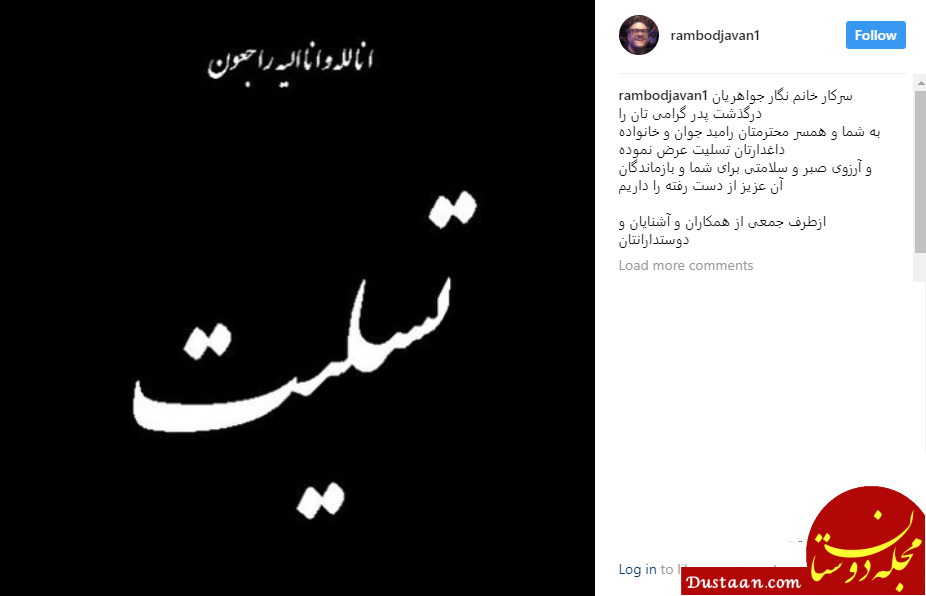 حسن جواهریان پدر نگار جواهریان بازیگر سینمای کشورمان عصر امروز دار فانی را وداع گفت. ادمین های صفحات اینستاگرامی رامبد جوان و نگار جواهریان با انتشار پستی این ضایعه را …